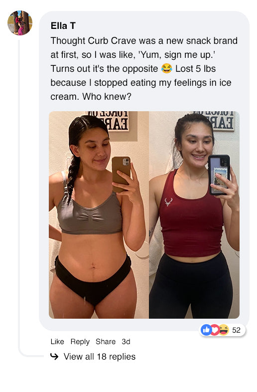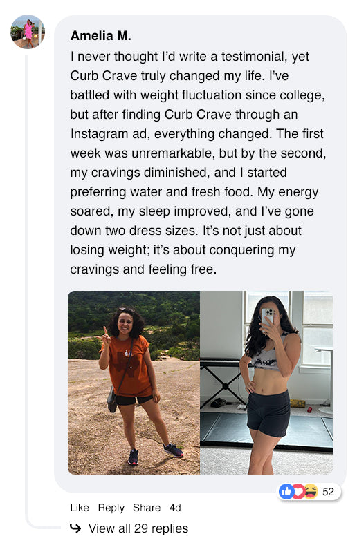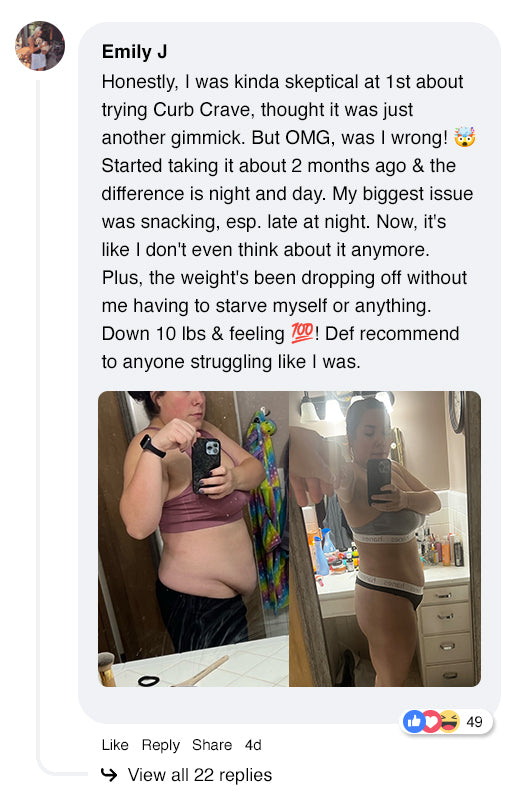 You may notice an immediate difference taking Curb Crave on your first day and will continue to notice a reduction in your appetite and sugar cravings between meals over the first 1-3 weeks.